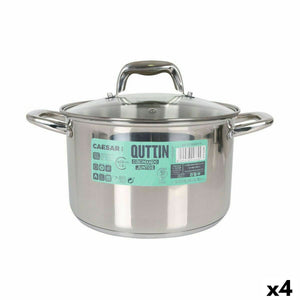 Pot met Glazen Deksel Quttin Caesar Staal ø 22 x 14,5 cm (4 Stuks)